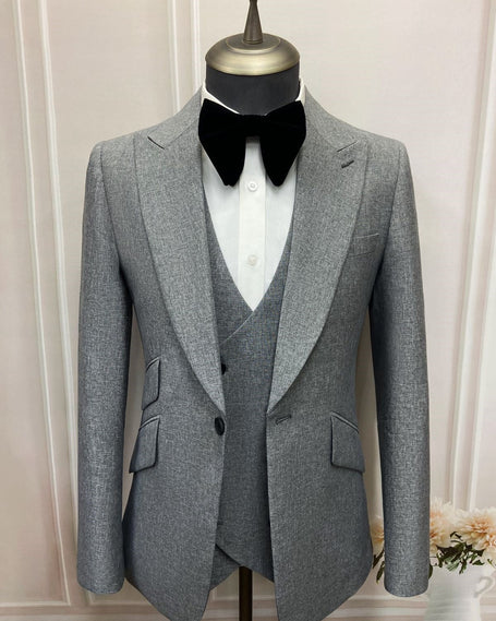 Suit Set Modern Fit Notched Lapel Blazer V-Neck Vest Men