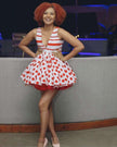 Women's Sleeveless Deep V-Neck Striped Polka Dot Mini Dress